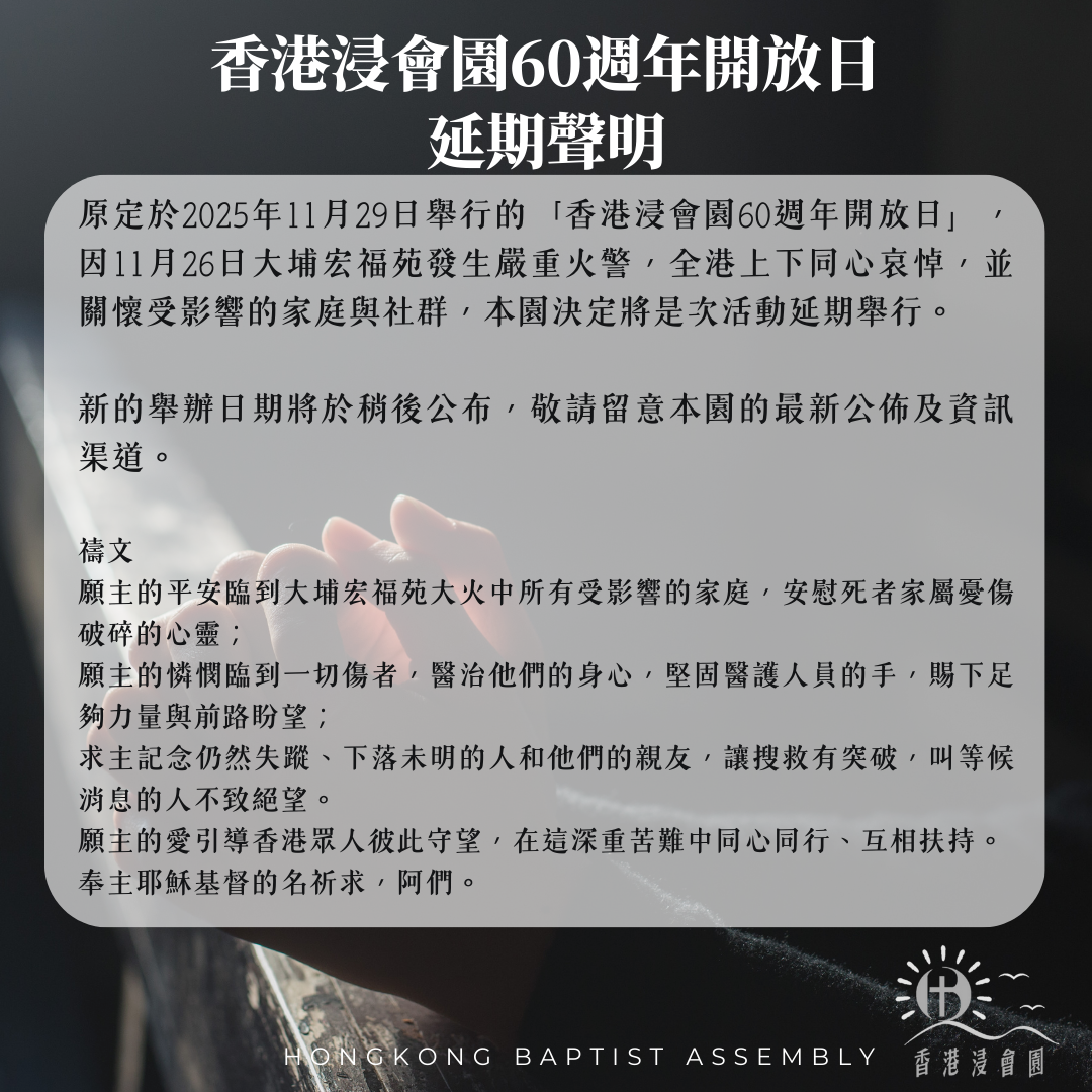 香港浸會園60週年開放日 延期通知