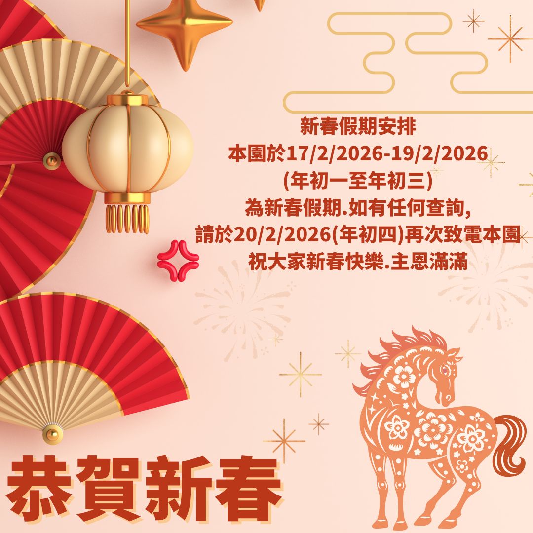 本園於17/2/2026-19/2/2026(年初一至年初三)為新春假期,